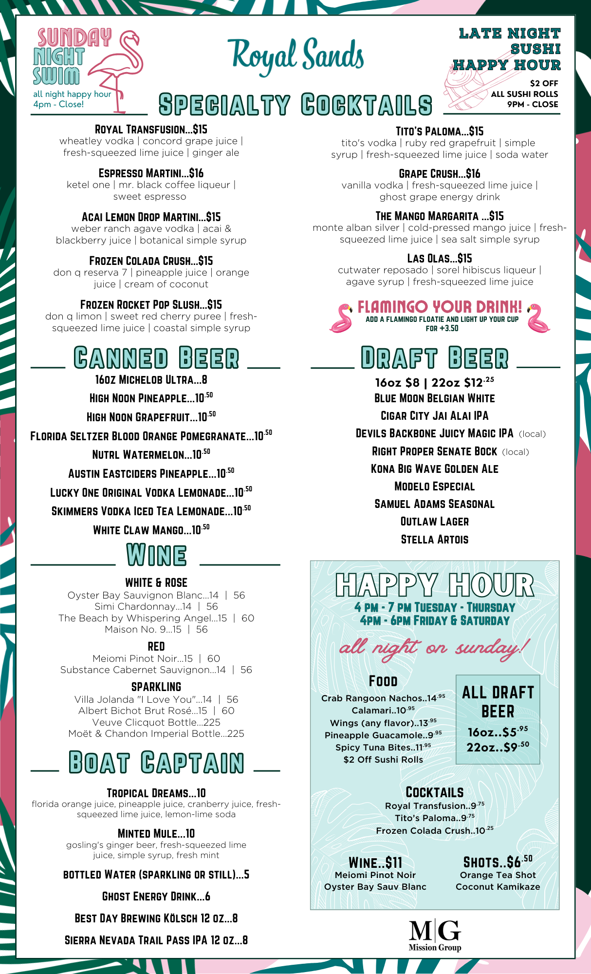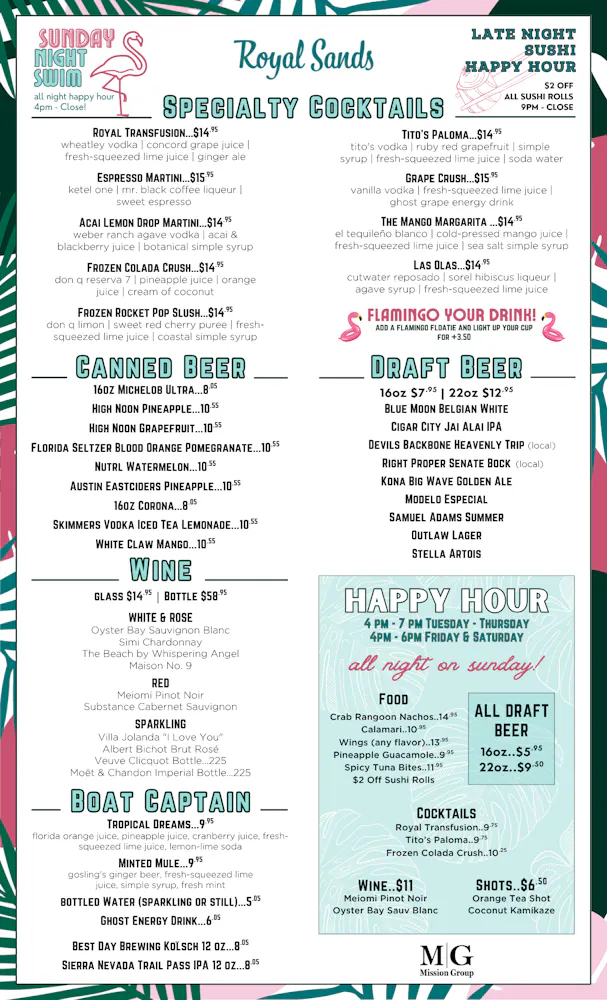florida orange juice, pineapple juice, cranberry juice, fresh-squeezed lime juice, lemon lime soda