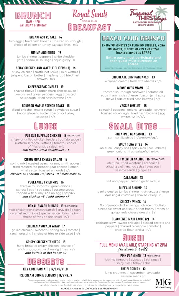 Enjoy 90 minutes of flowing bubbles, Kona Big Waves, Bloody Marys and Royal Transfusions for $27.99.