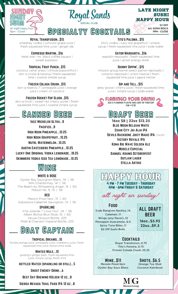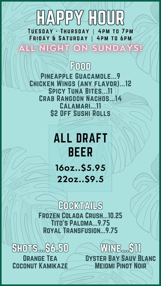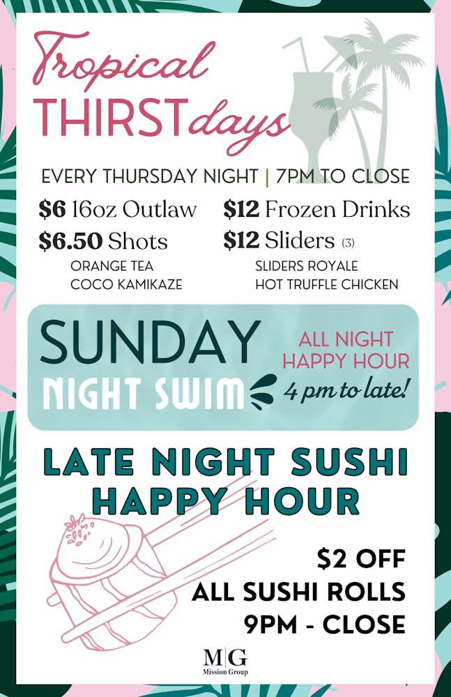 All Night Happy Hour from 4pm - Close Every Sunday!Late Night Sushi Happy Hour